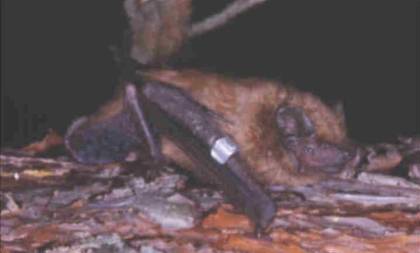 | Auffällige Merkmale: | Zweitgrößte Art im Gebiet. Dreieckige, breite Ohren, Ohraußenrand mit 4-5 Querfalten, Tragus kurz, pilzförmig. Kurzes, anliegendes Fell, Unterseite matt hellbraun, Oberseite im Sommer rost- bis rehbraun, glänzend, ab August mehr mattgraubraun. In den inneren Mundwinkeln Drüsenwülste, die sich zur Paarungszeit ab August stark vergrößern, in dieser Zeit und bei Störungen starker Moschußgeruch wahrnehmbar.. Gesicht und Flughäute sind schwarzbraun, die Flügel lang und schmal. Bei Störung im Tagesschlaf Akinese möglich. Rufamplitudenmaximum bei ca. 25 kHz |