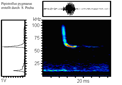 | Lebensweise und Lebensraum: | Die Mückenfledermaus ist eine in Mitteleuropa neu entdeckte Art. Mit Hilfe der Bioakustik wurden zwei Zwergfledermausarten bei 42-50 kHz und 52-57 kHz ortend nachgewiesen. Eine DNA-Analyse brachte 1999 den Beweis das es sich bei der hochrufenden Zwergfledermaus um eine eigene Art handelt. Die Mückenfledermaus wurde bevorzugt in Auenwäldern, Waldgebieten in Gewässernähe und an Teichen nachgewiesen. Das Verhalten dieser neuen Art ist leider noch nicht ausreichend erforscht. | ||||||||||